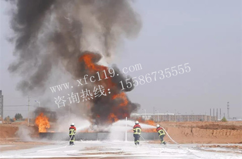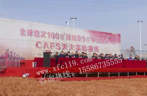 本次滅火演練分為100㎡原油火與9㎡甲醇火,并由上海消防研究所進行數(shù)據(jù)采集工作。首先進行的是100㎡原油火滅火實驗,在油池中注入10噸原油后,由主持人宣布活動開始,下達指令后,3名消防隊員開始行動,在點燃油池的瞬間,可以看到火焰開始快速向上燃燒,大量的熱輻射開始向四周蔓延,此時油池底部的溫度為8℃,油面溫度為11℃,加熱至18分鐘后,油池底部溫度達到了189℃,火焰溫度為900℃,此時現(xiàn)場能聽見油池傳來的陣陣爆鳴聲,面對著熊熊烈火,現(xiàn)場所有領(lǐng)導與嘉賓都屏息以待,隨即,3名消防隊員持槍攻進火場,當CAFS微細壓縮空氣泡沫接觸到火面的瞬間,在場所有人都能感到熱輻射的明顯下降,不再有熱浪的侵襲,3名消防隊員運用戰(zhàn)術(shù),相互配合,短短47秒的時間,將100㎡的原油火迅速撲滅,主持人此刻播報溫度數(shù)據(jù),油池底部溫度為100℃,油面溫度為33℃,油火不再復燃,泡沫可以掛在罐壁上。僅僅出動3名消防人員用時47秒,11.5L泡沫混合液與371.5L的水即完成了這場100㎡原油大火的滅火行動,現(xiàn)場所有領(lǐng)導、嘉賓一同見證了這一精彩時刻。