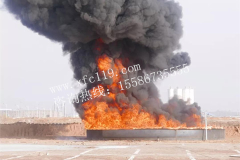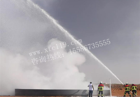 隨后,主持人宣布第二場甲醇火滅火演練即將開始,現(xiàn)場開來一輛油罐車,在所有領(lǐng)導與嘉賓的注視下完成了1.5噸甲醇的加注工作,主持人開始介紹甲醇火的特性,其是無色有酒精氣味易揮發(fā)的液體,是重要的基本有機化工原料,具有劇毒、易燃燒性,其蒸汽與空氣在一定范圍內(nèi)可形成爆炸性混合物,形成的火災十分難滅,異常危險,現(xiàn)場準備工作格外小心謹慎,一切就緒后,隨著一聲指令,開始了甲醇點燃,此時的油面溫度為14℃,燃燒過程中,可見油池上方出現(xiàn)了受熱之后空氣擾動的畫面,燃燒至9分鐘左右,消防隊員使用3支消防槍,用時85秒鐘,完全撲滅甲醇火,使溫度降低至環(huán)境溫度8℃,本次實驗泡沫混合液消耗15.3L,水量消耗494.7L。