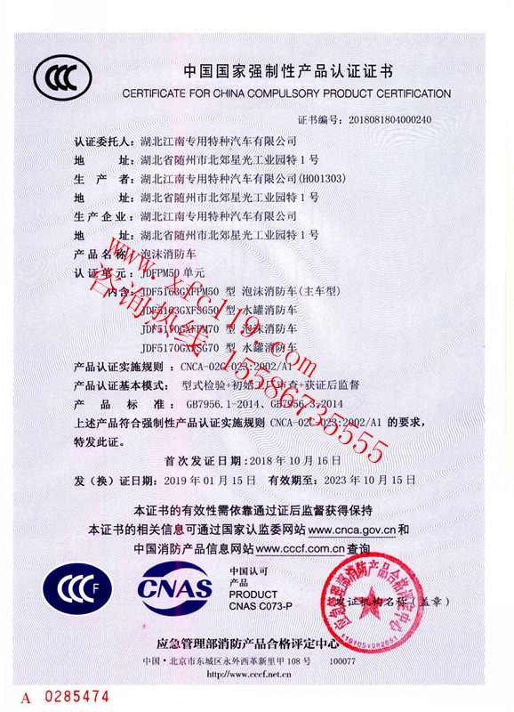 我公司湖北江南專用特種汽車有限公司一直致力于創(chuàng)新研發(fā)新型消防車車型,目前又有2類國五消防車車型的3C已經審批下發(fā)。