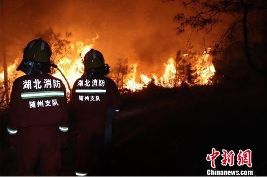 當(dāng)天下午接到指令后,隨州市消防救援支隊派出5臺小型消防車、運輸車,2支森林火災(zāi)撲救分隊共45名消防員趕赴現(xiàn)場。