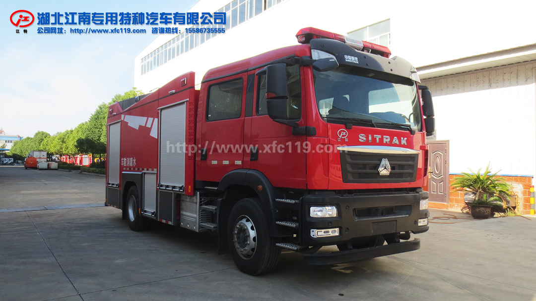 JDF5180GXFPM70/Z6型泡沫消防車采用中國重汽集團濟南商用車ZZ5206N471GF5底盤改裝而成。整車由消防員乘員室和車身兩大部分組成,乘員室為原裝雙排,可乘坐2+4人,該車為外露罐結構,車身前部為器材箱,中部為罐體,后部為泵房。載液罐體為優質碳鋼,內部噴涂環氧底漆及環氧瀝青漆,與底盤采用彈性連接,載水5000kg,泡沫2500-3000kg,裝備了上海雄真消防設備有限公司生產CB10/60-XZ型常壓消防泵,額定流量60L/S,車頂安裝成都威斯特消防機械有限公司生產的PL48型車用泡沫消防炮。該車最大的特點是載液量大、操控性好、維修簡便。可廣泛應用于公安消防隊、廠礦企業及社區、碼頭等場所,撲救大型油類火災和一般物質火災。