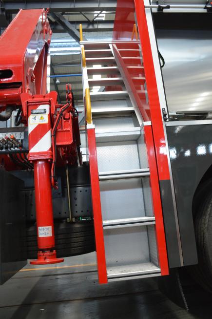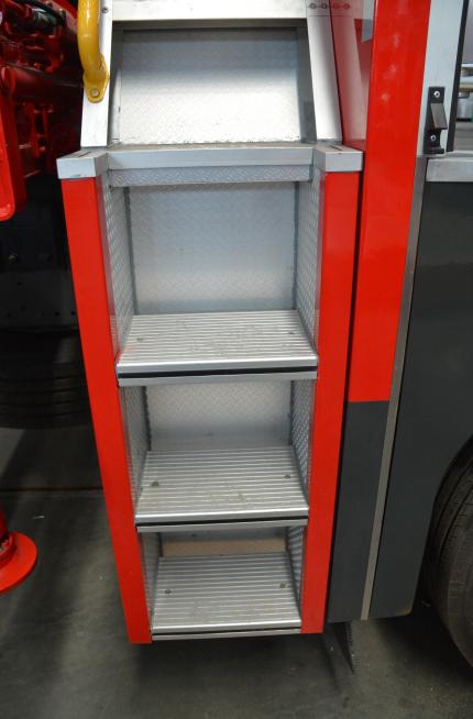 梯臺、扶手及護欄:為便于取用/收納應(yīng)急救援裝備器材,符合安全和人機工程要求,本車根據(jù)實際使用需要,設(shè)計有各種梯臺、扶手、安全護欄等輔助設(shè)施。