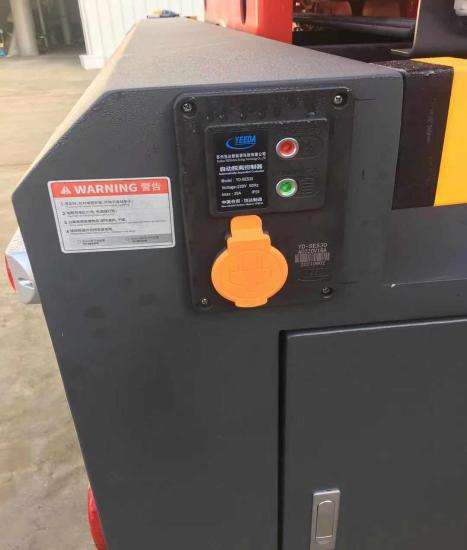 5.10自動分離式充電充氣裝置:自動充電充氣裝置采用用蘇州怡達新能源科技有限公司YD-SES30A型自動脫離充電充氣系統(tǒng),由自動繞線器提供的220V電源,通過分離式彈性插頭給車輛供電供氣,當電瓶充滿、儲氣罐壓力達到設(shè)定值后系統(tǒng)自動停止工作,當需要出動車輛時,駕駛員只需打開啟動鑰匙,車輛啟動時分離式彈性插頭自動與車輛充電充氣接口分離,當出現(xiàn)異常情況不能自動分離時,會發(fā)出聲光報警提醒駕駛員查看故障或手動分離,達到快速出動車輛的目的。
