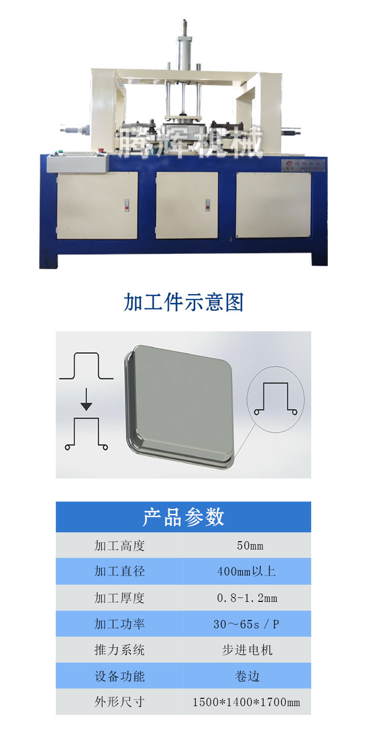 本文介紹的是用于長方形盤子產(chǎn)品加工設備異形卷邊機,首先將加工件放在模具上,按一鍵啟動后模具旋轉,卷邊工位進刀,跟隨模具旋轉施壓加工件的邊緣受壓向內(nèi)卷邊。可任意選擇手動/自動操作,具有操作方便,性能穩(wěn)定。(公司根據(jù)客戶需求,為客戶量身定制適合的設備,歡迎新老客戶咨詢了解)